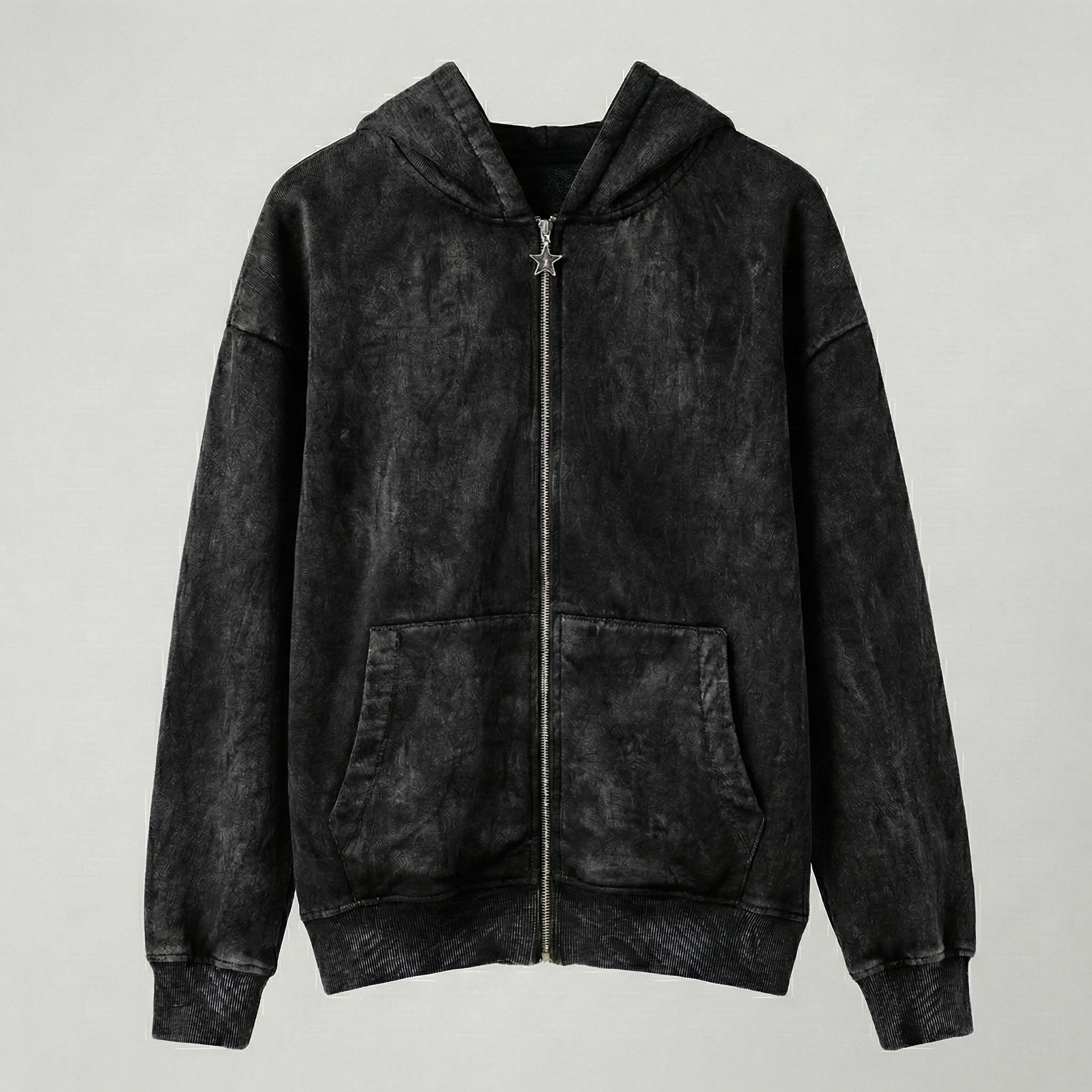 Crafted from premium cotton-blend fleece, it feels soft, breathable, and built to last. The washed-blue finish gives every hoodie a one-of-a-kind tone, making yours as unique as your vibe. With a full zipper, double-layered hood, and kangaroo pockets, this piece nails the balance between functionality and freedom.